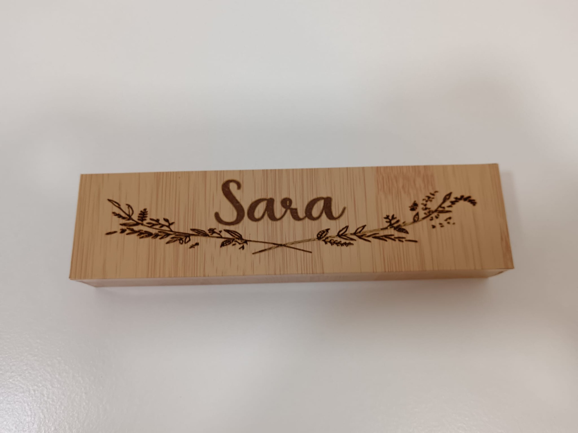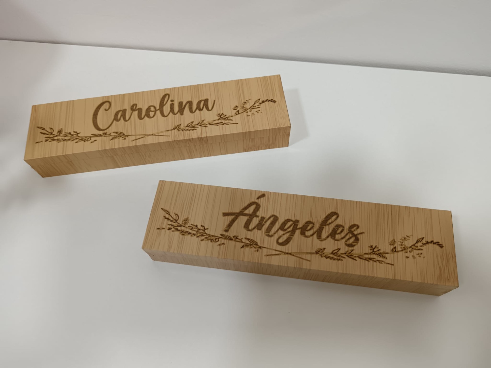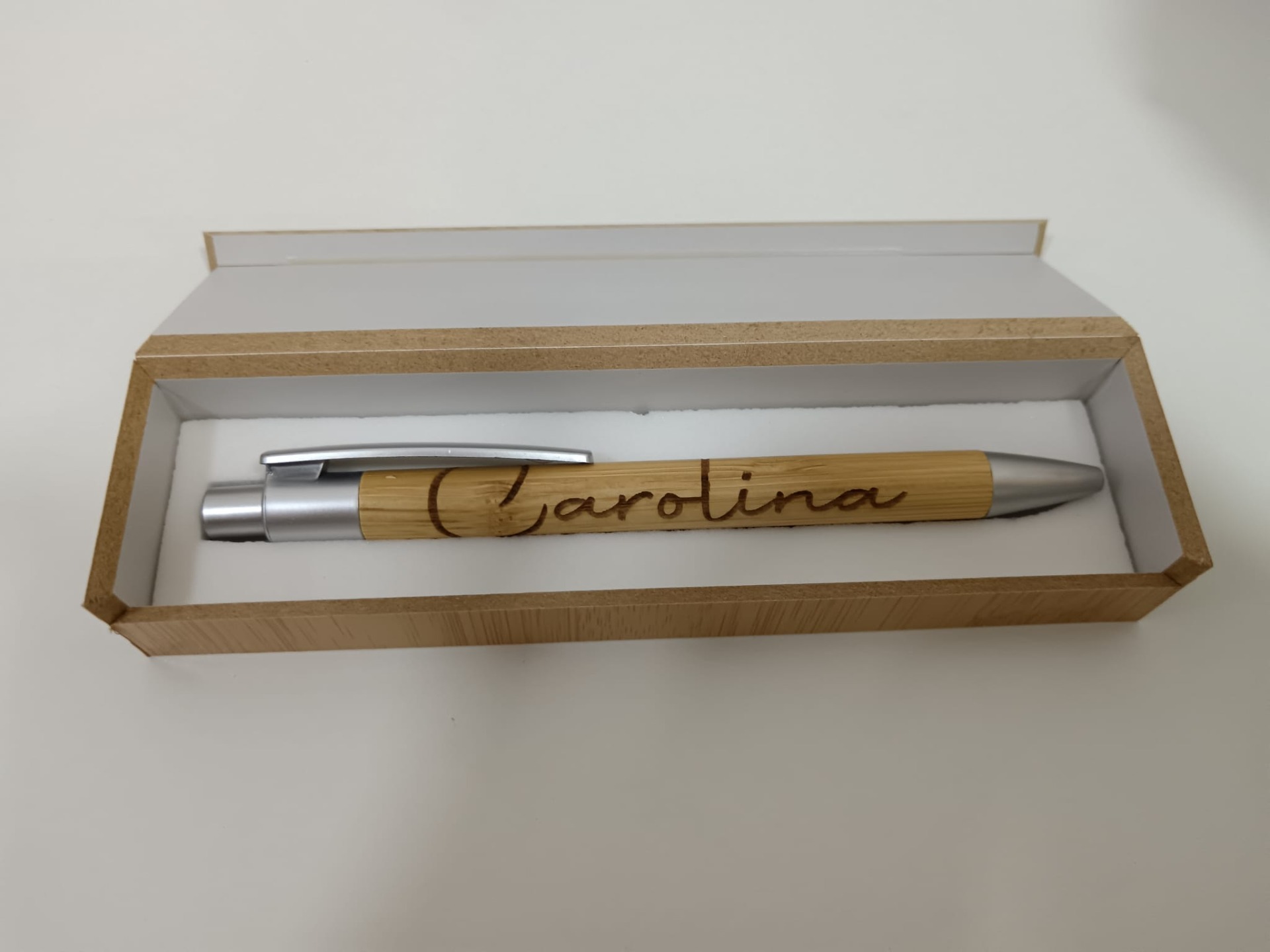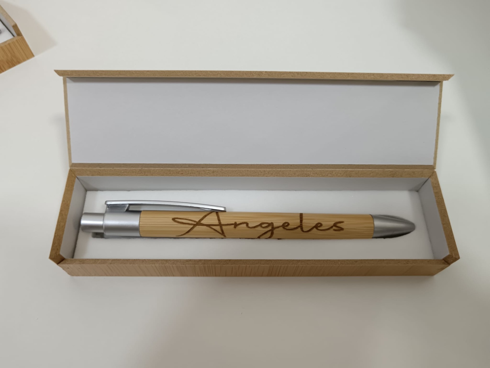 Bolígrafo de bambú, personalizado con el nombre grabado a láser. Con caja personalizada a conjunto.