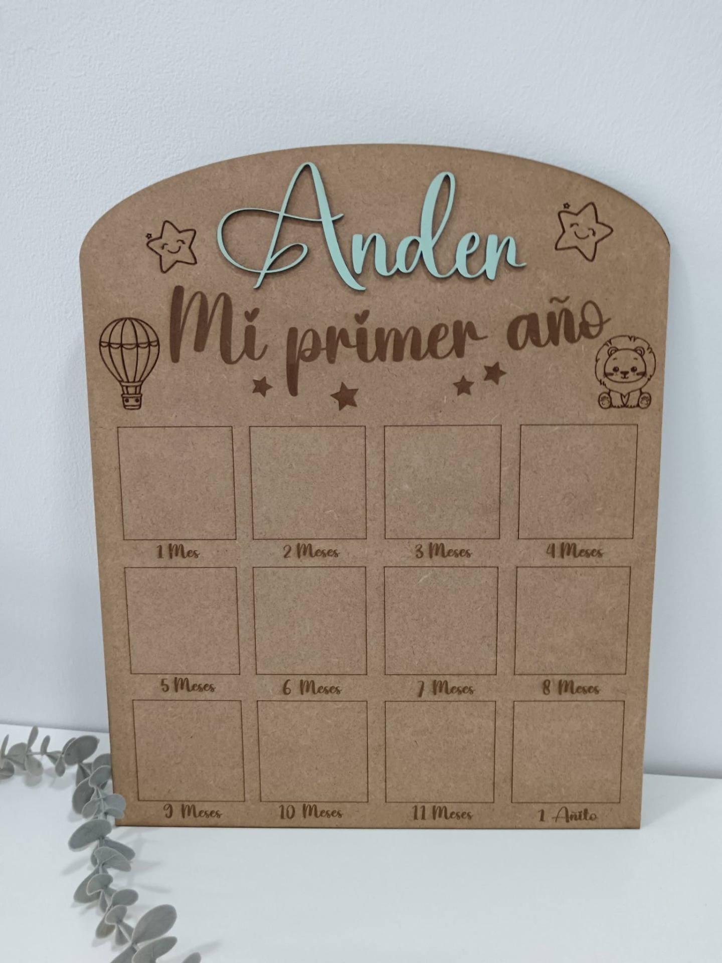 Cuadro del primer año del bebé, donde poner mes a mes sus fotografías y, tener un recuerdo muy especial de su primer añito o, decorar su primer cumpleaños.