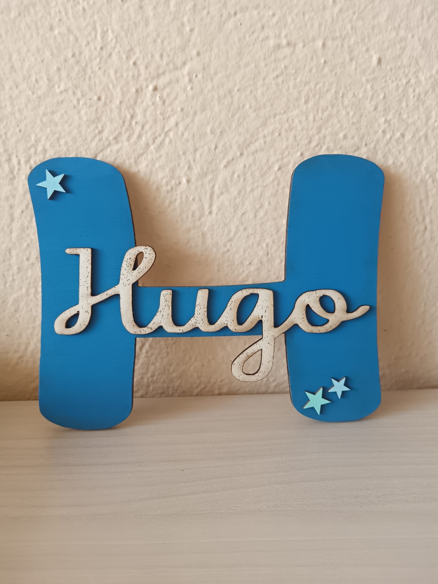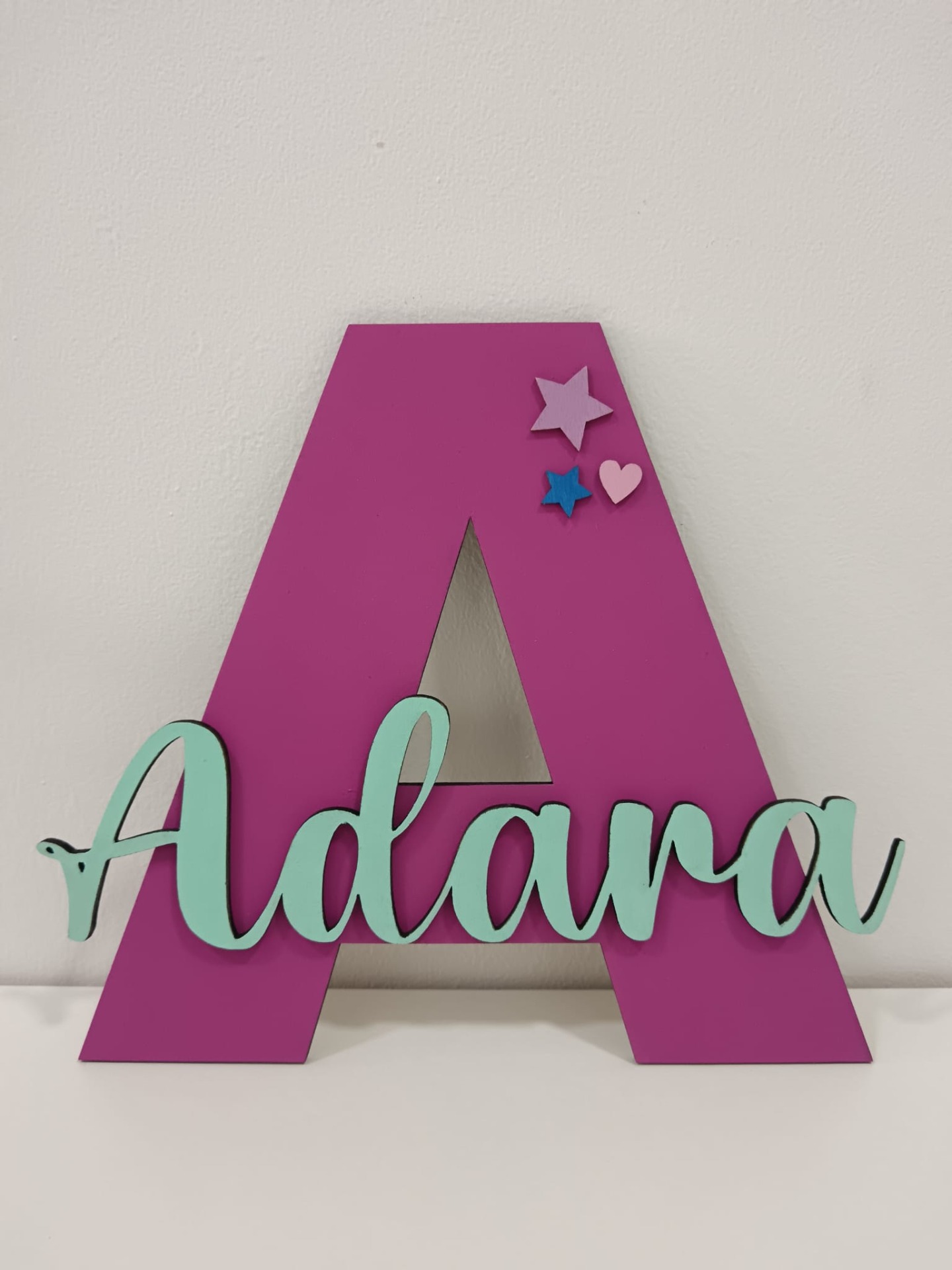 Inicial con nombre personalizada, perfecta para colgar en la puerta de la habitación o, si lo prefieres para la pared.