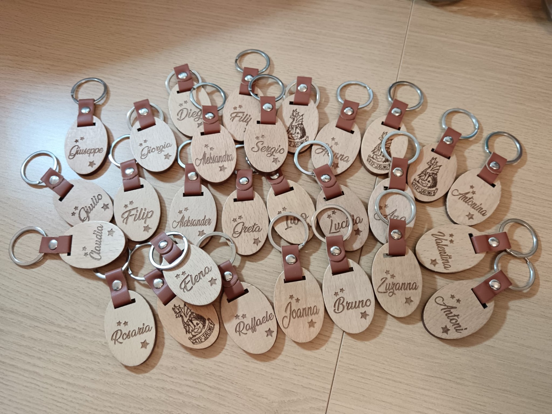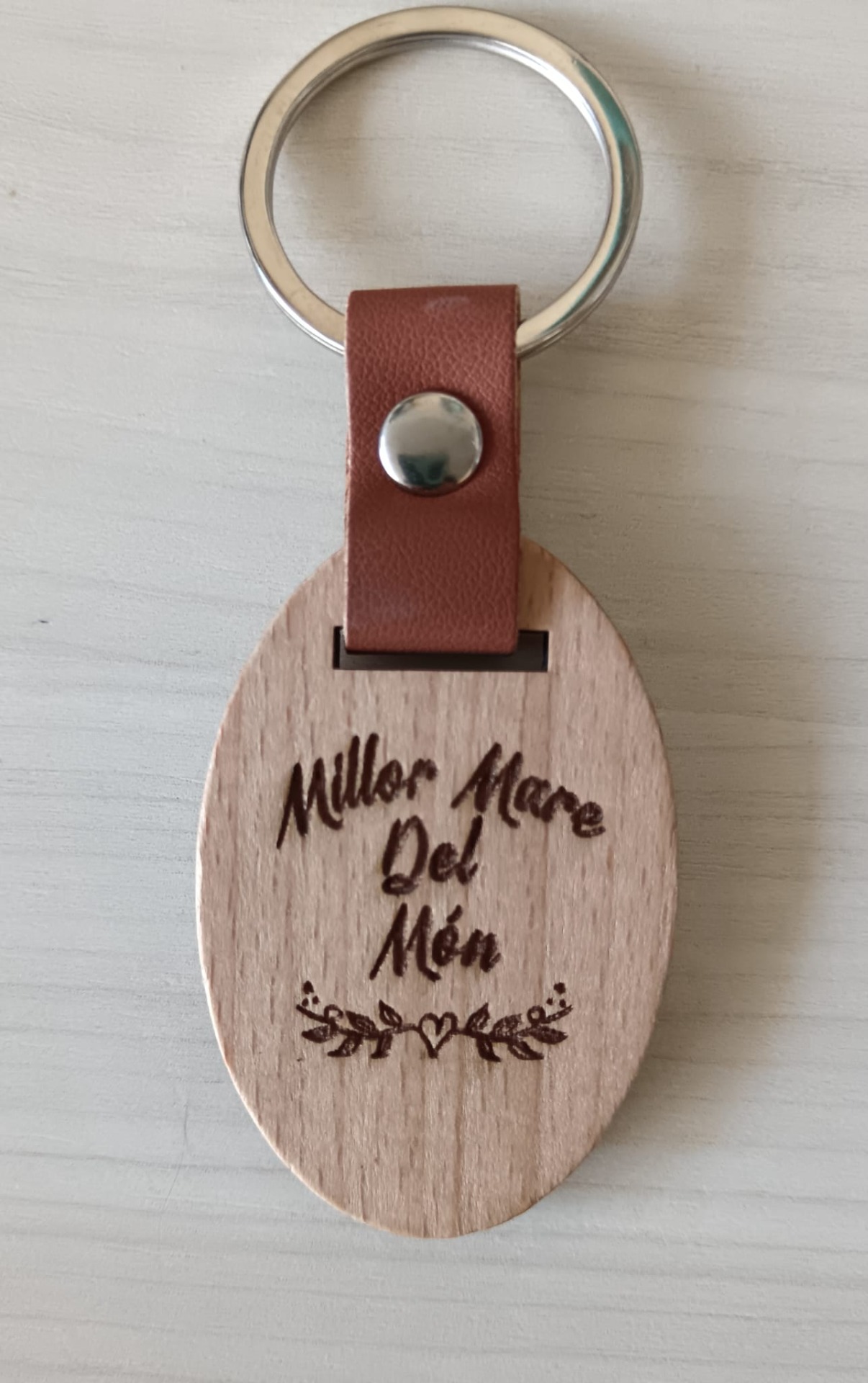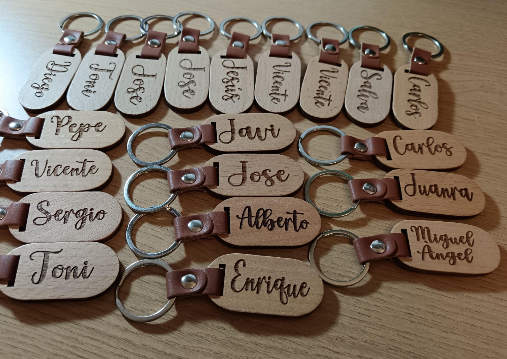 Estos llaveros de madera con tira de cuero, son perfectos para cualquier ocasión.