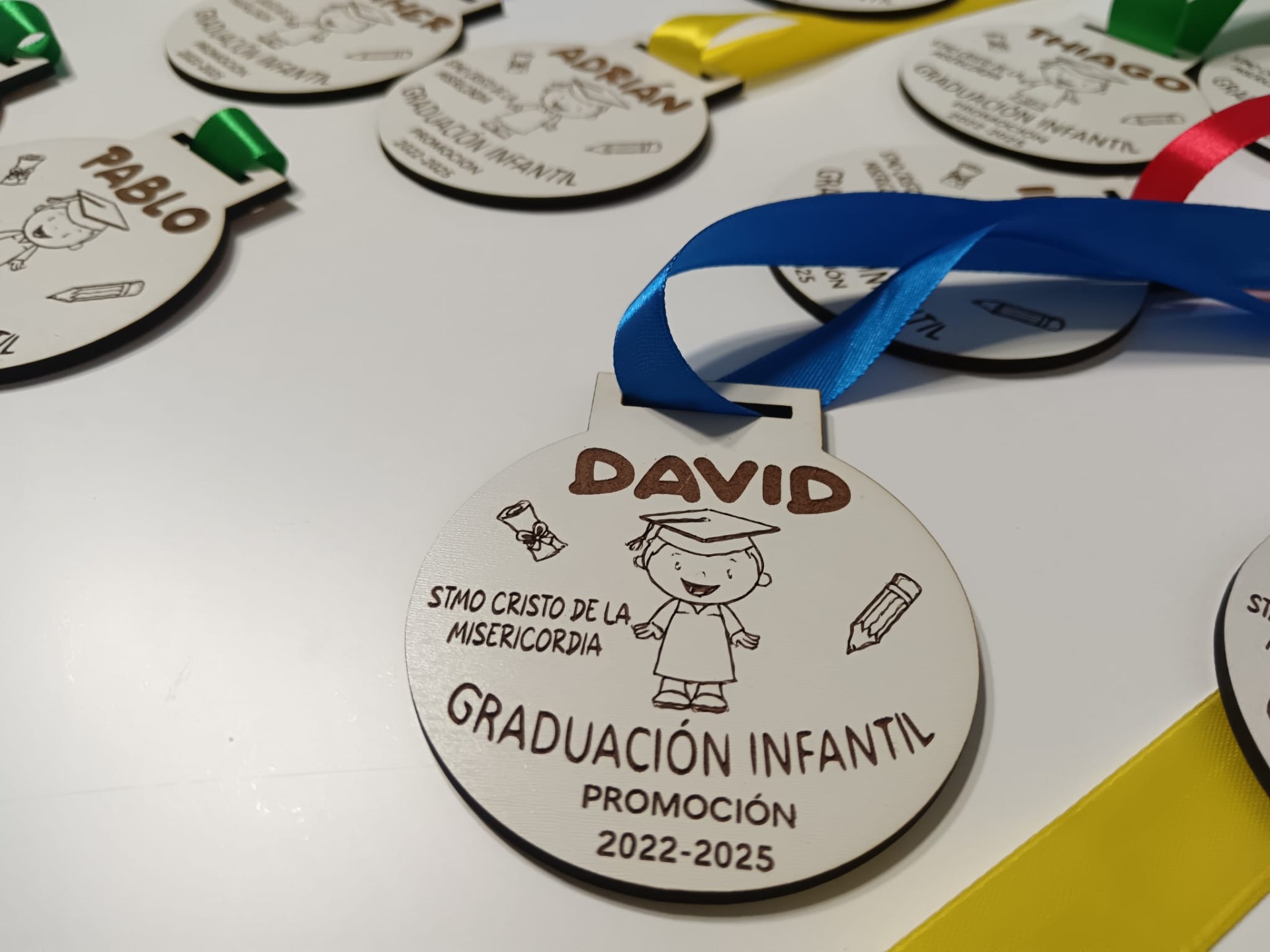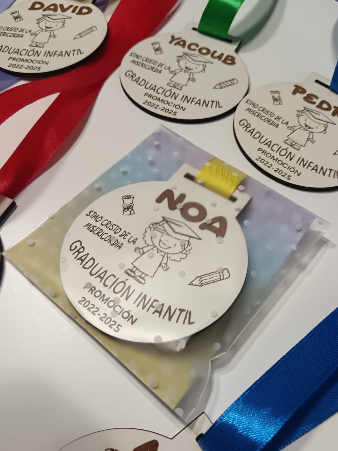 Realizadas en DM color blanco y, con cintas en colores aleatorios.