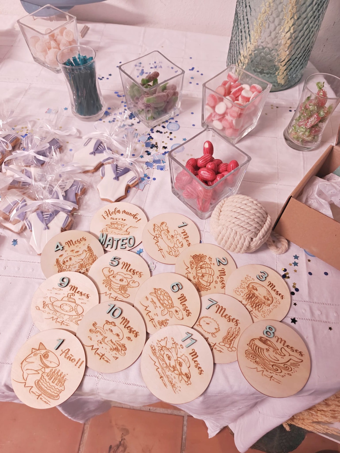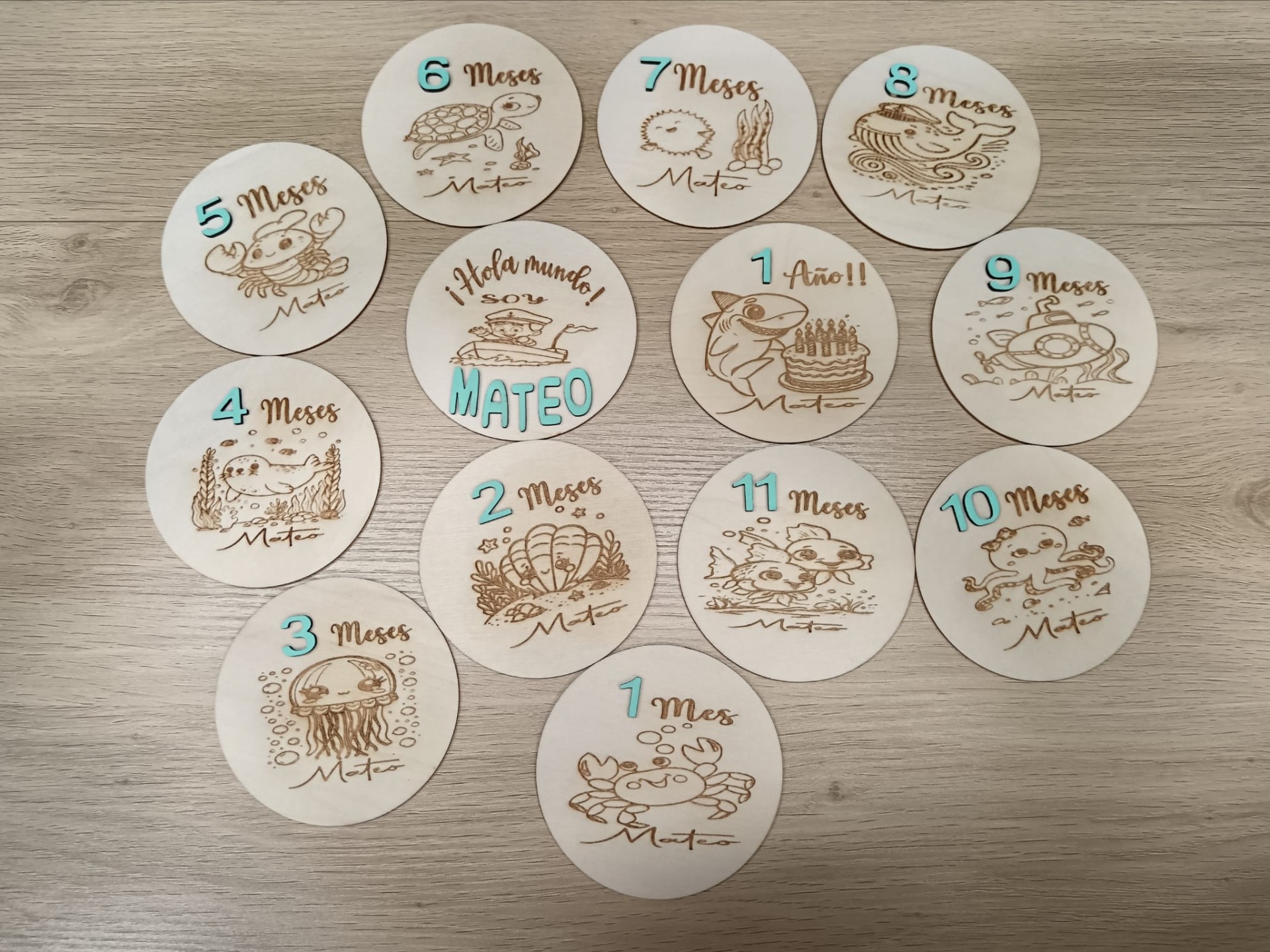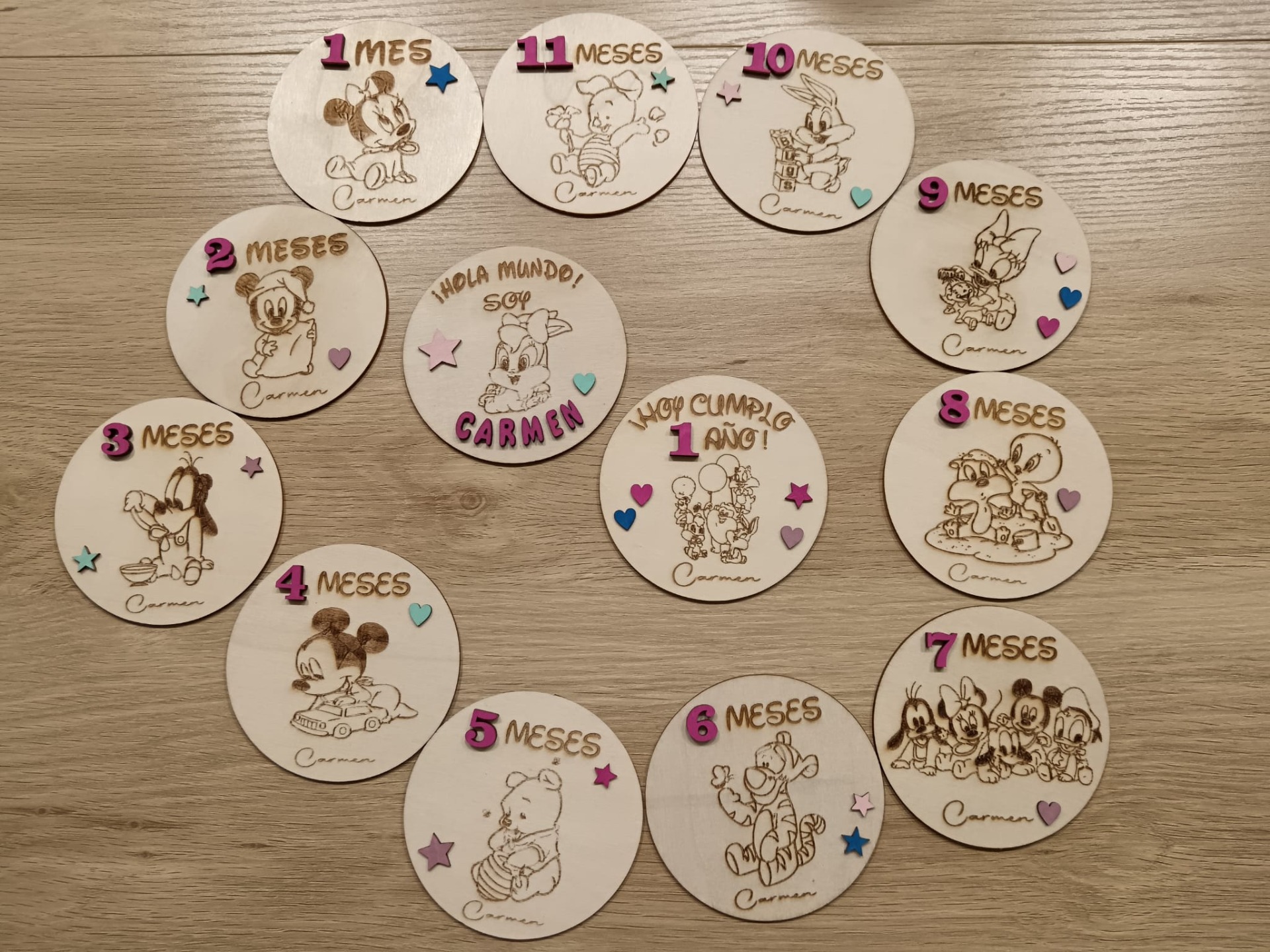 Placas Cumple meses, para fotografíar al bebé mes a mes y, guardar un recuerdo para siempre.