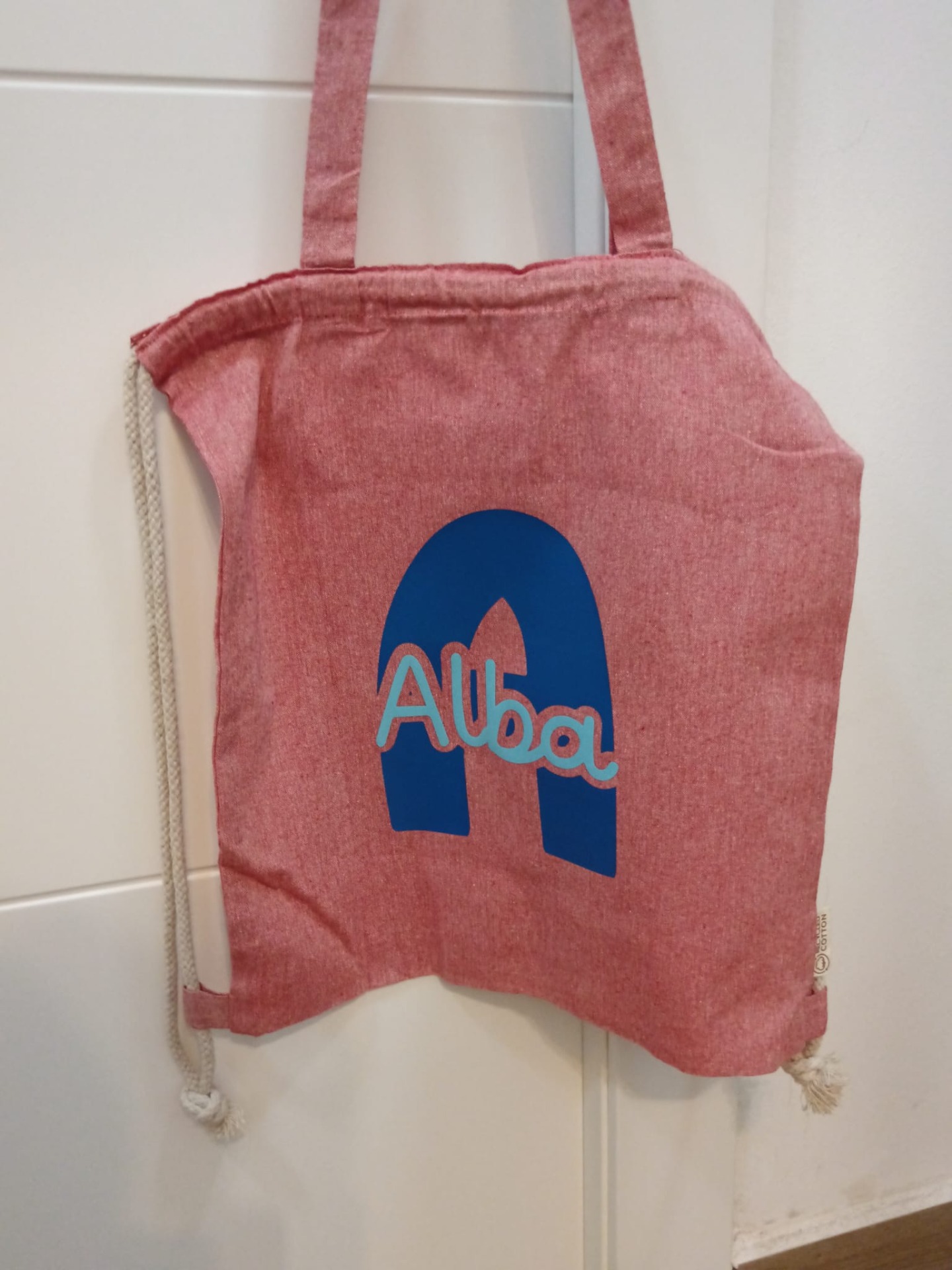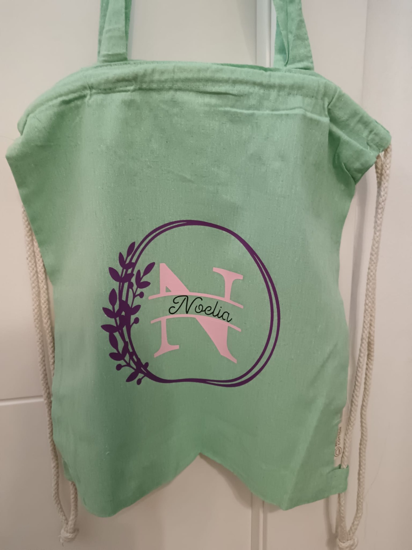 Saco-mochila con asas, personalizado con Incial y nombre.