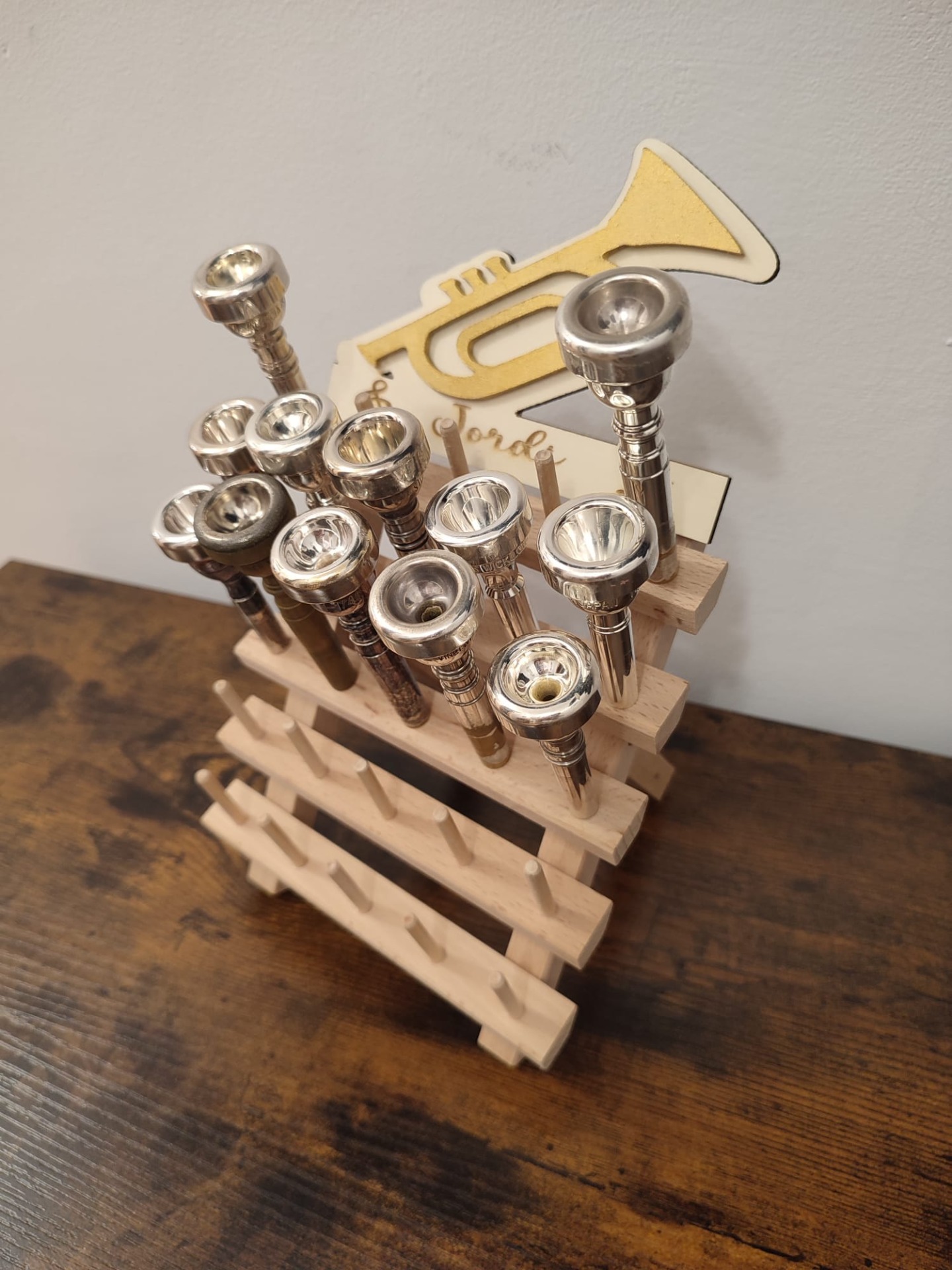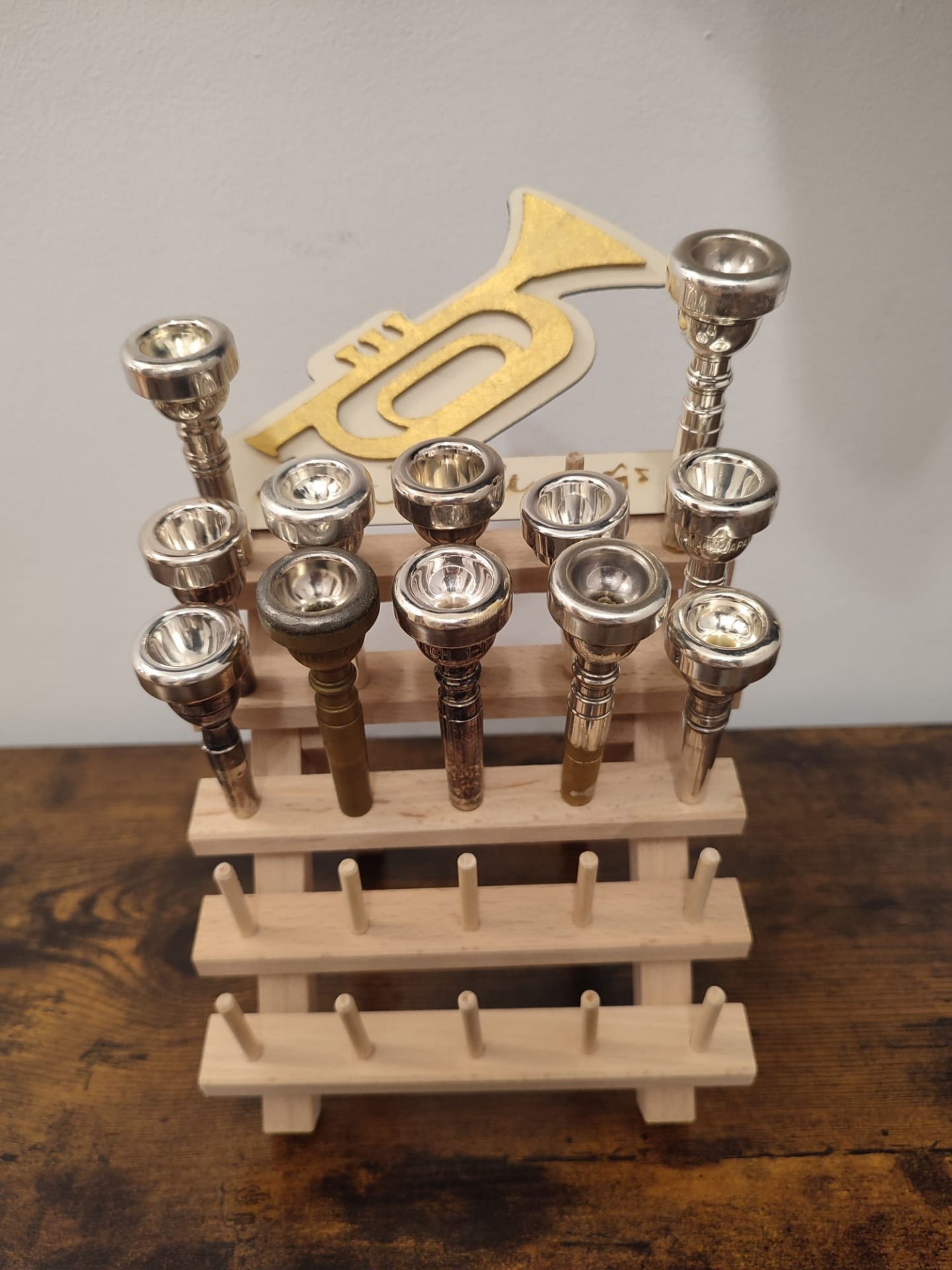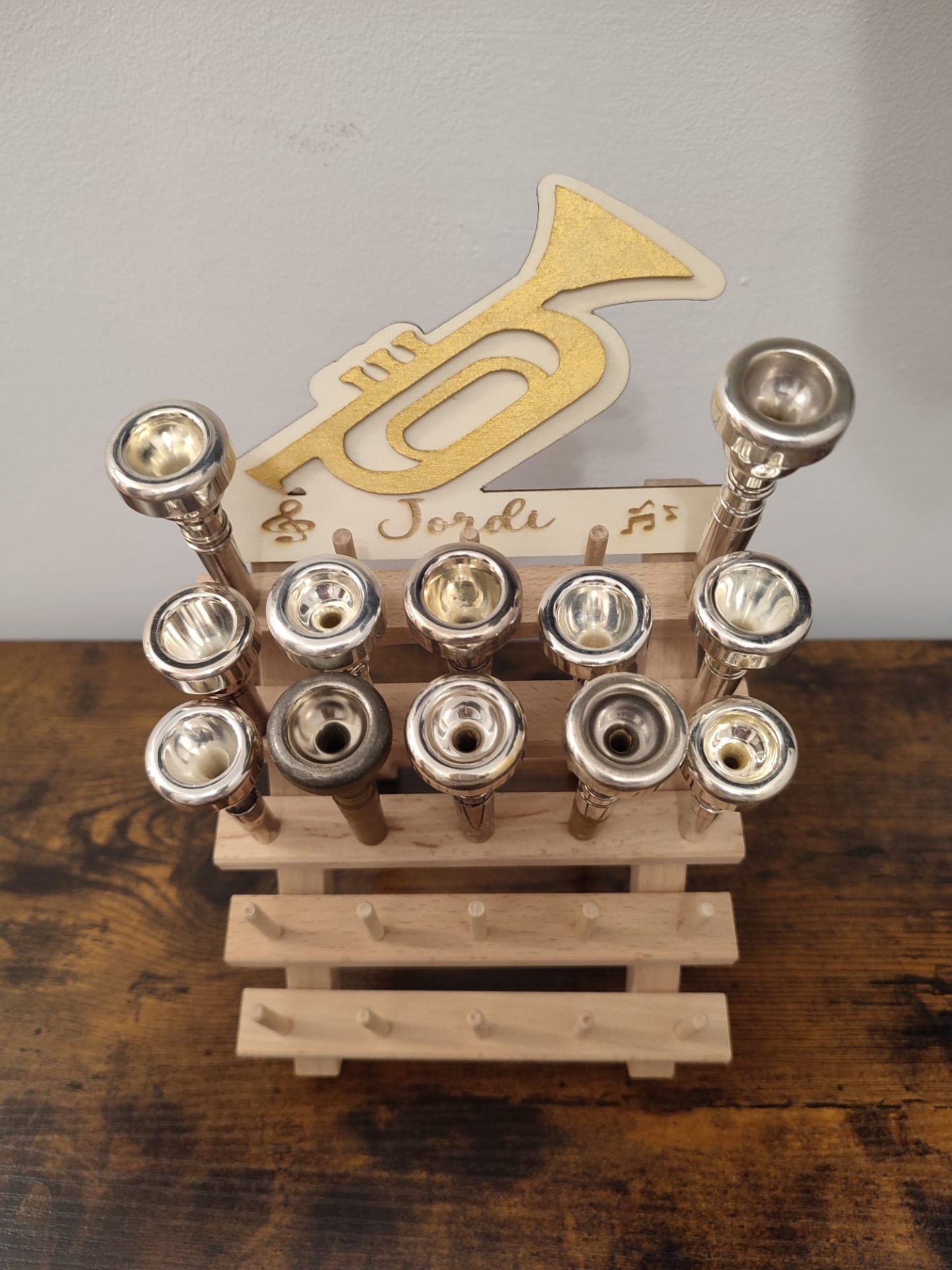 Regalo perfecto para tener ordenadas y, a mano todas las boquillas de la trompeta.